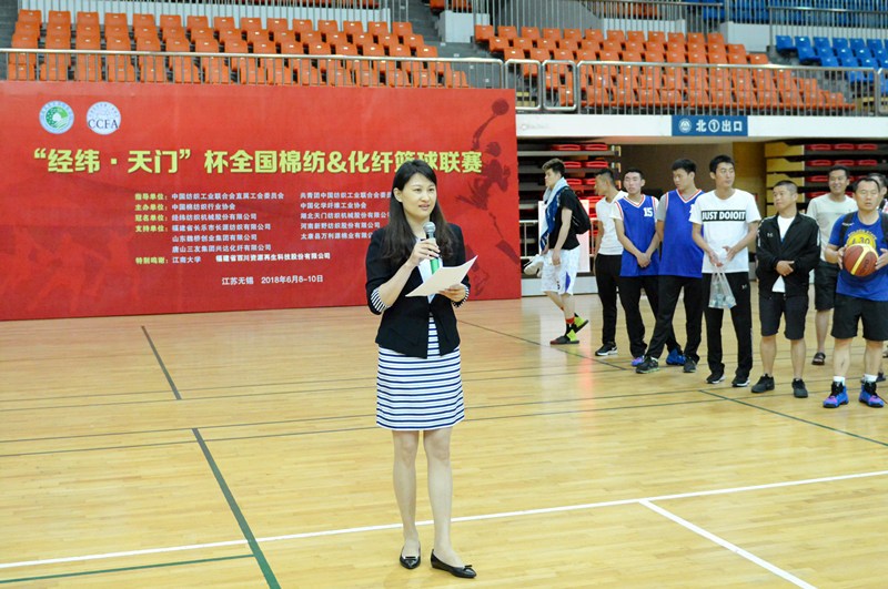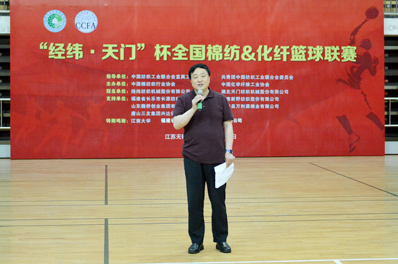 中國紡織工業聯合會副會長、中國化學纖維工業協會會長端小平宣布比賽開幕并為籃球賽開球。