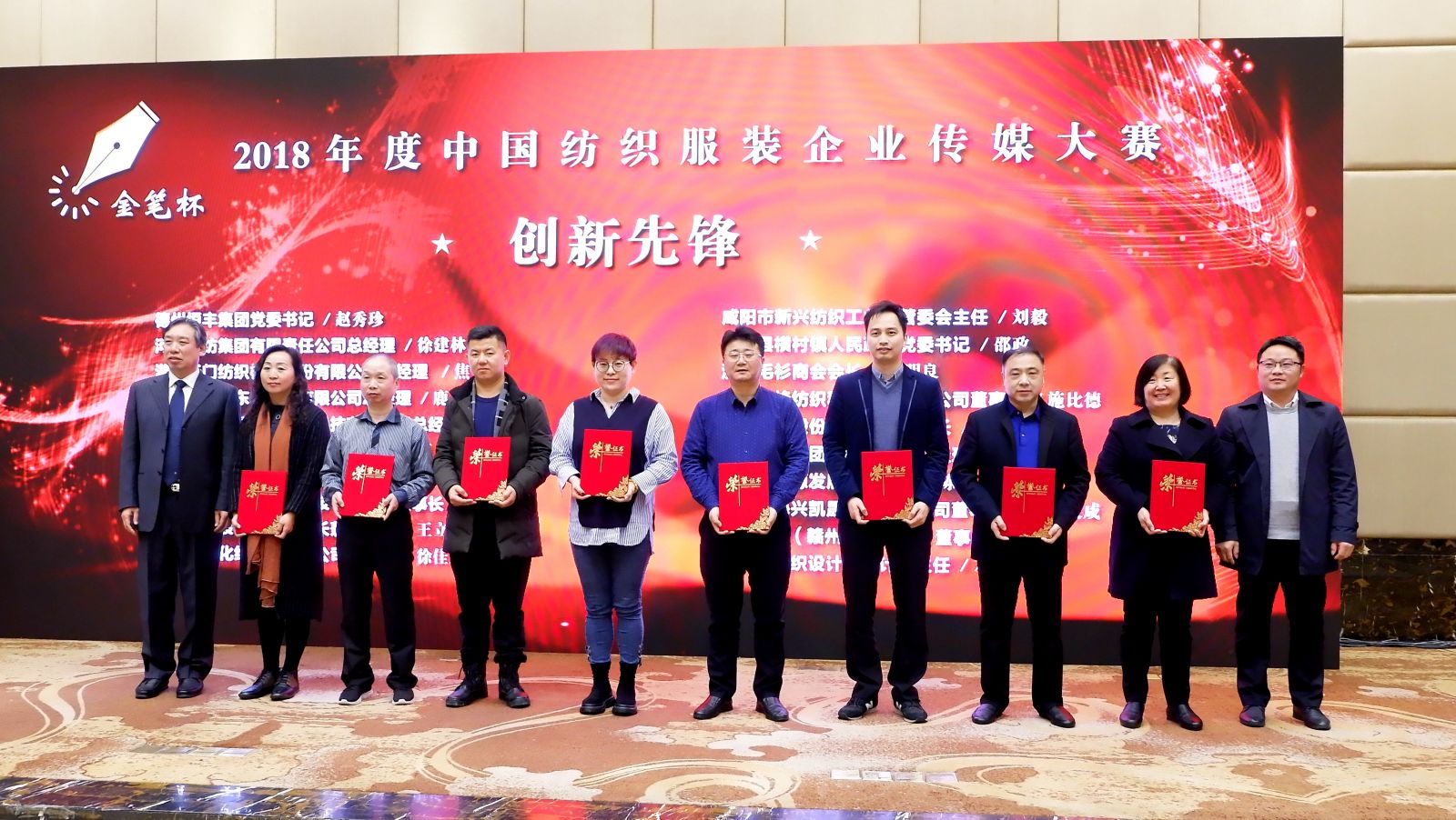 會上,“金筆杯”2018年度中國紡織服裝企業(yè)傳媒大賽隆重揭曉,天門紡機(jī)榮獲“綜合實(shí)力典范”榮譽(yù)稱號,天門紡機(jī)總經(jīng)理焦倫進(jìn)榮獲“創(chuàng)新先鋒”榮譽(yù)稱號。
