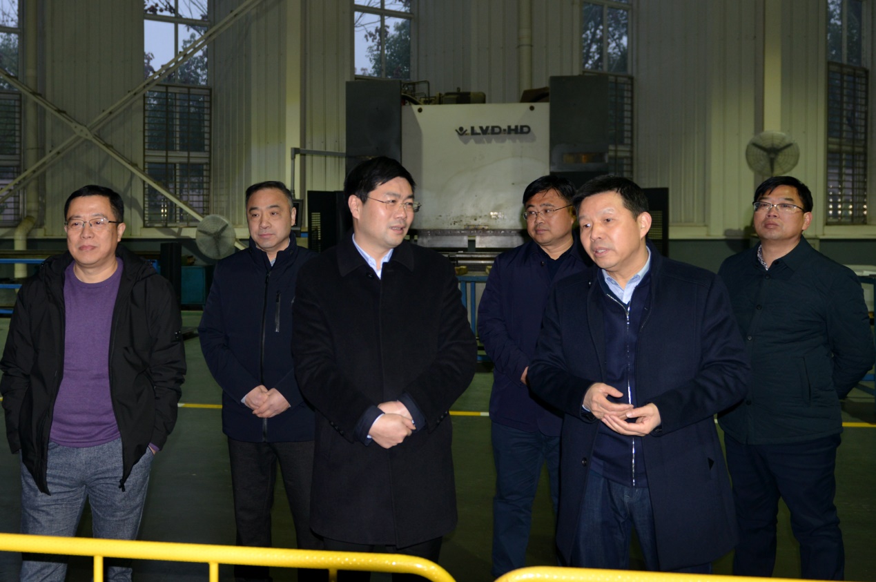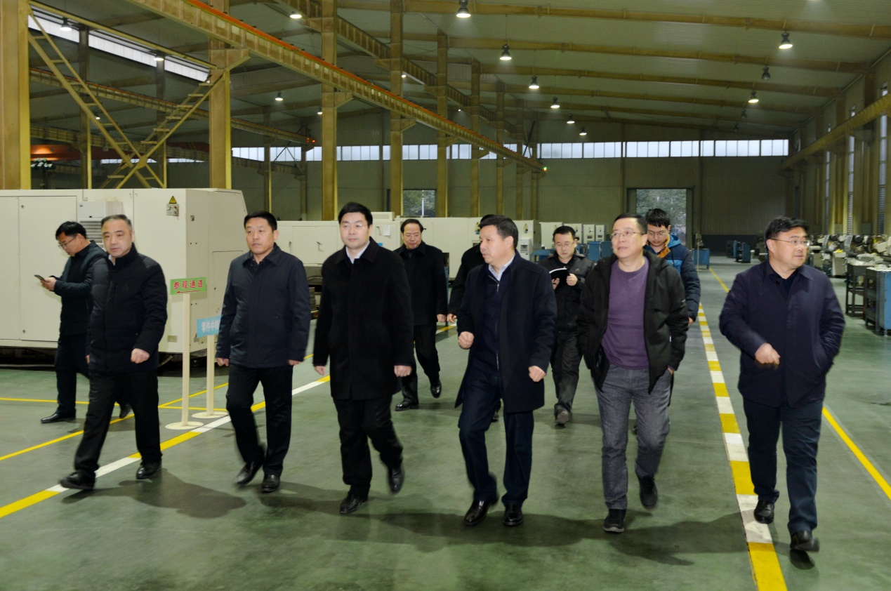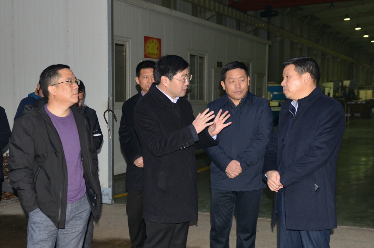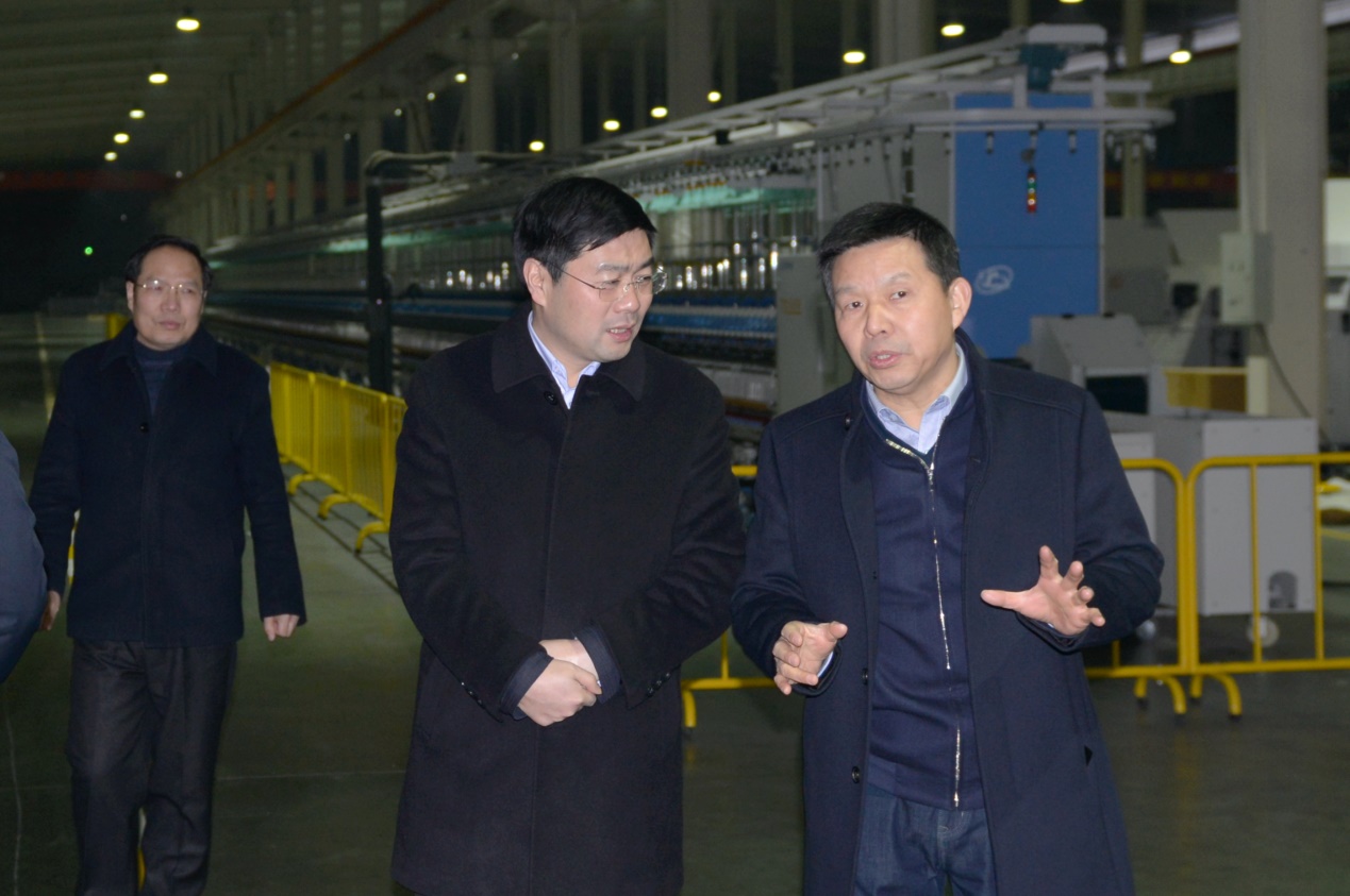 2019年1月2日下午,市委副書記、代理市長(zhǎng)楊興銘調(diào)任天門后第一次調(diào)研就來到天門紡機(jī),公司董事長(zhǎng)沈方勇、總經(jīng)理焦倫進(jìn)、黨委書記魯?shù)挛呐阃瑮钍虚L(zhǎng)參觀了生產(chǎn)現(xiàn)場(chǎng)。