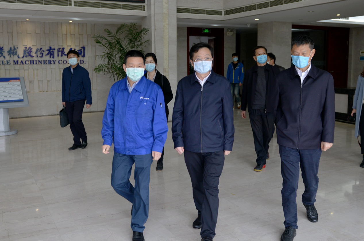 4月21日,湖北省人大常委會黨組成員、人大常委會副主任胡志強一行,在天門市委書記莊光明等領導的陪同下,到天門紡機調研指導,實地了解企業防疫和復工復產情況。