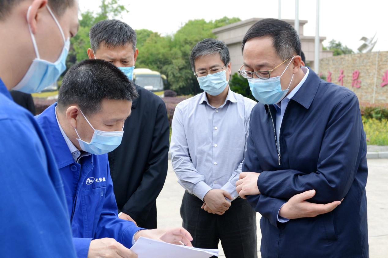 4月23日,國家衛健委副主任于學軍率工作組,在湖北省衛健委副主任涂遠超、天門市委書記莊光明、天門市代理市長楊興銘等領導的陪同下,到天門紡機調研指導企業疫情防控及復工復產情況。