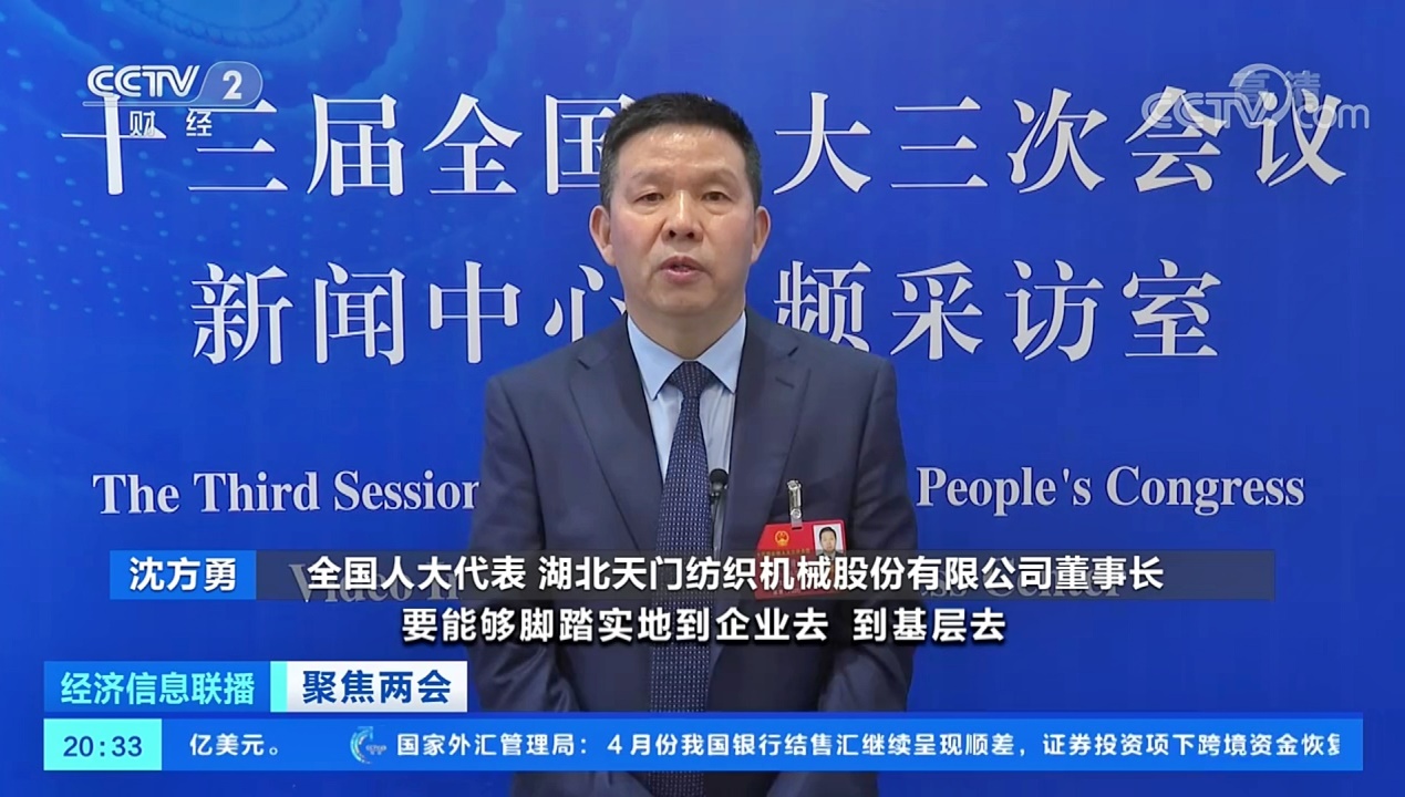 全國人大代表、湖北中小企業(yè)協(xié)會會長、湖北天門紡織機械股份有限公司董事長沈方勇在參加第十三屆全國人大三次會議期間,分別就“關(guān)于促進棉花及紡織產(chǎn)業(yè)健康發(fā)展的再次建議”、“ 關(guān)于出臺強有力措施對沖疫情影響支持湖北中小企業(yè)發(fā)展的建議”、“ 關(guān)于珍惜寶貴財政金融資源在紓困惠企工作中精準施策有的放矢的建議”做專題諫言。