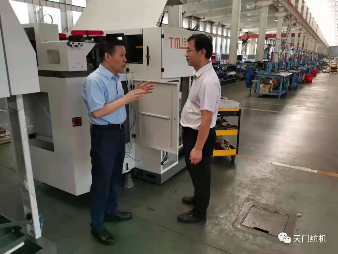 在公司董事長沈方勇的陪同下,夏局長一行到生產車間現場查看了生產制造情況,聽取了公司新開發的TM19、TM13產品介紹,了解了企業正在實施的“智慧工廠”項目。夏局長對天門紡機不斷加強新產品技術創新、推進技術裝備改造升級給予了充分肯定。