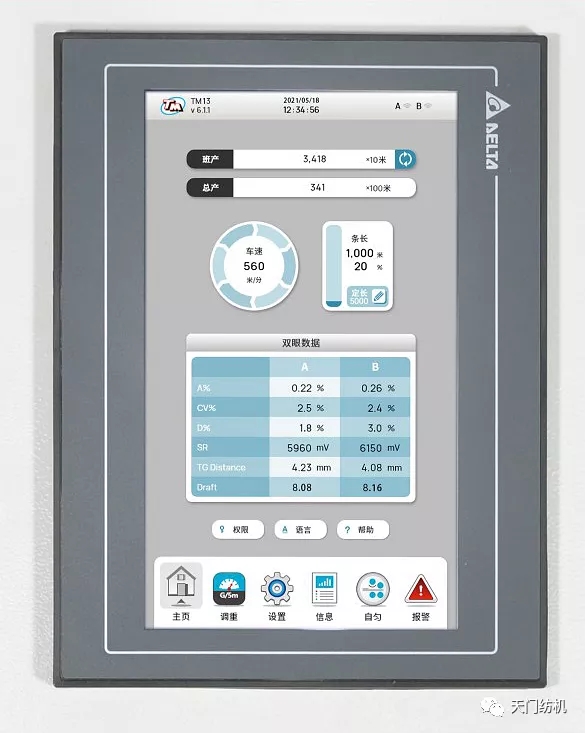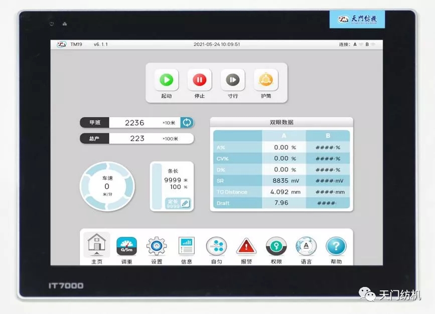 操作界面是整機工業設計的重要部分(天門紡機TM19型并條機)