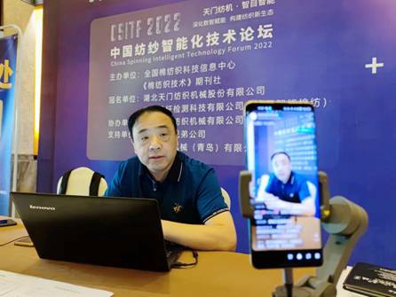 會前,焦倫進總經理接受了媒體現場直播采訪,焦總從“作為中國紡紗智能化技術論壇的冠名單位,天門紡機最看重本次論壇的幾個特質”及“天門紡機在提升紡織企業生產效率和效益,服務紡織企業方面有哪些計劃”等方面做了解答。