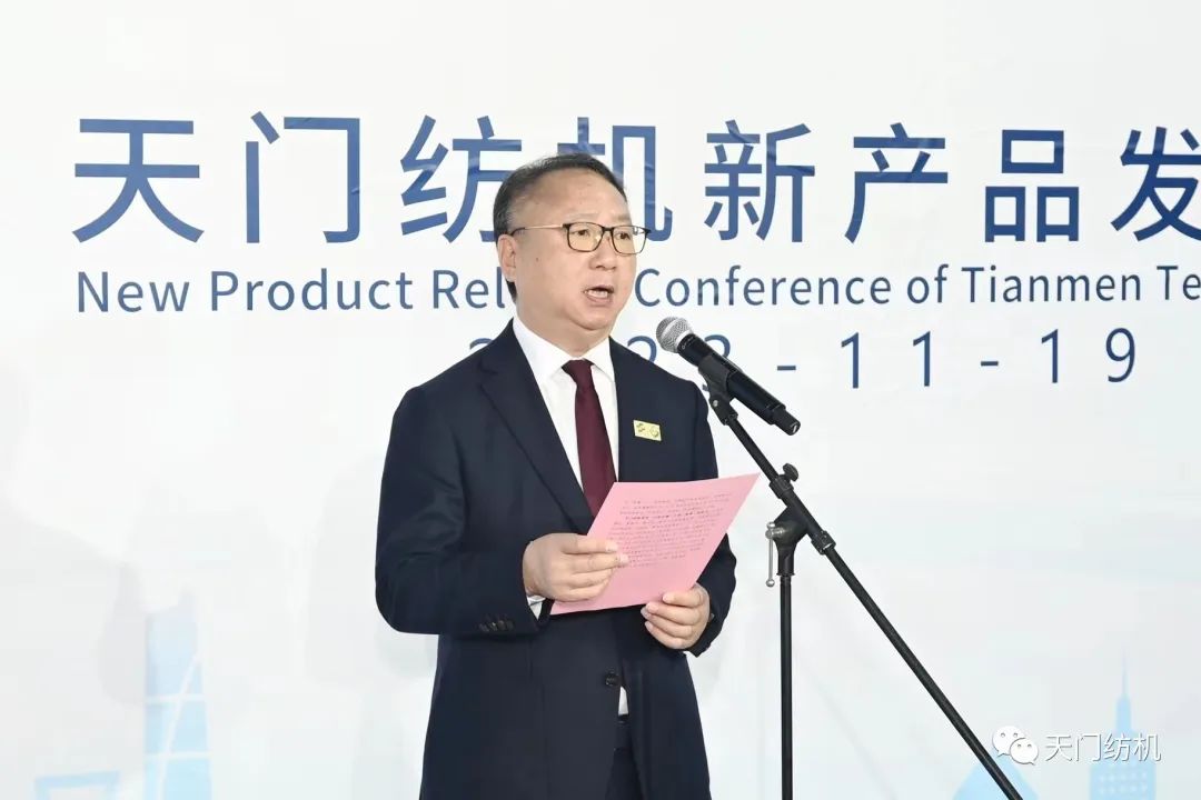 天門紡機董事長沈方勇在致辭中對蒞臨本次發布會的各位領導、專家和各界朋友表示了熱烈歡迎和誠摯謝意,他說,“兩年前的展會上,我們提出了‘開創并條工序全自調勻整時代’的理念。通過實踐與應用,這個理念逐步被用戶接受和認可,幫助一些紡企取得了較好的經濟和社會效益。兩年多來,我們又研制出了新一代 T2、T3 系列并條機,開啟了‘智并聯’先河。這也標志著天門紡機在推動紡織裝備智能化、高端化的進程中又樹立了一座新的里程碑。”
