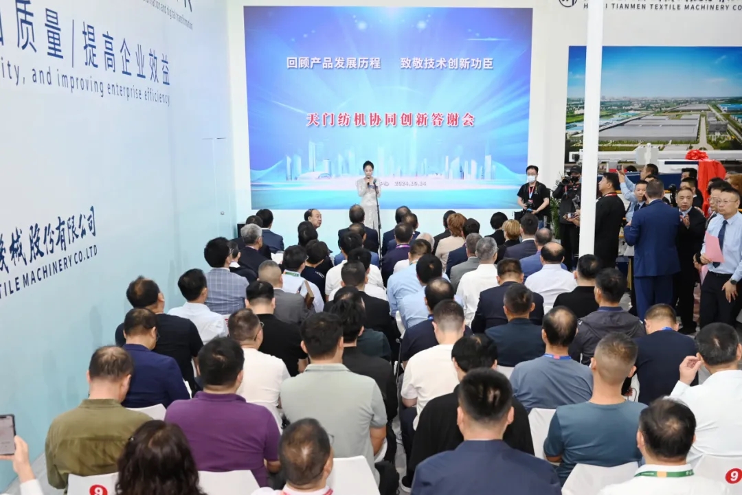 2024年10月14日上午,金秋上海,繁華與靜謐交織,美輪美奐。籍2024中國國際紡織機械展覽會暨ITMA亞洲展覽盛大開幕之機,天門紡機舉辦了以致敬協同創新功臣為主題的答謝會。