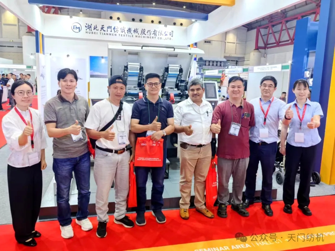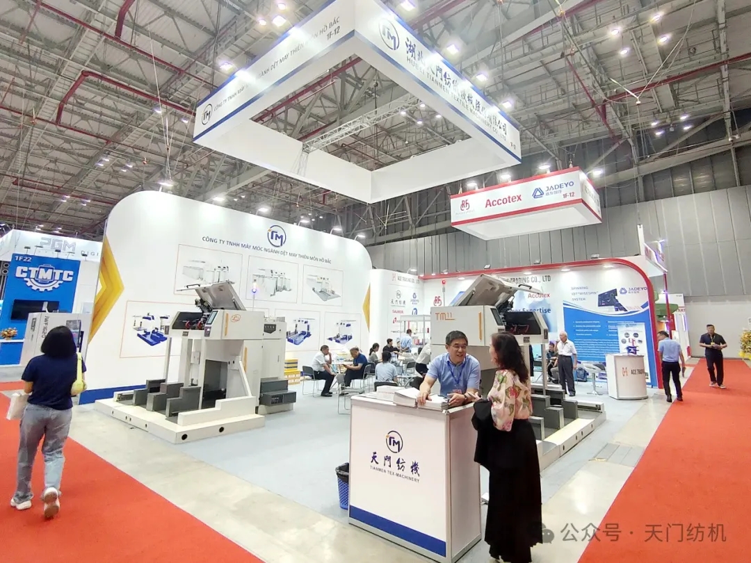 2025年4月,天門紡機以中國并條機標桿企業的姿態,先后亮相兩場國際展會——4月9日-12日的越南胡志明紡織工業展覽會與4月15日-17日的印尼國際紡織服裝機械展覽會,憑借自主研發的TM11型、TM13型并條機驚艷全場,展位熱度持續攀升,進一步拓展海外市場。