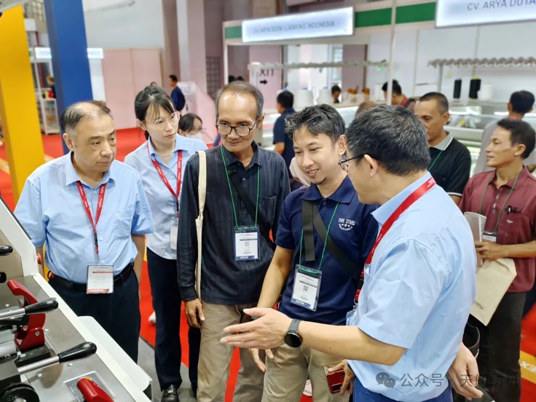 轉戰印尼雅加達,天門紡機的展位熱度不減。 PT.KAHATEX、PT.INDO、STEVEN TANUWIJAYA、PT.TEXMACH IMPEX、INDO LIBERTY TEXTILES PT等40余家紡企紛至沓來,深入探討技術細節與合作可能。展會上,公司不僅有效展示了最新的產品和技術,更是收獲了多份訂單。