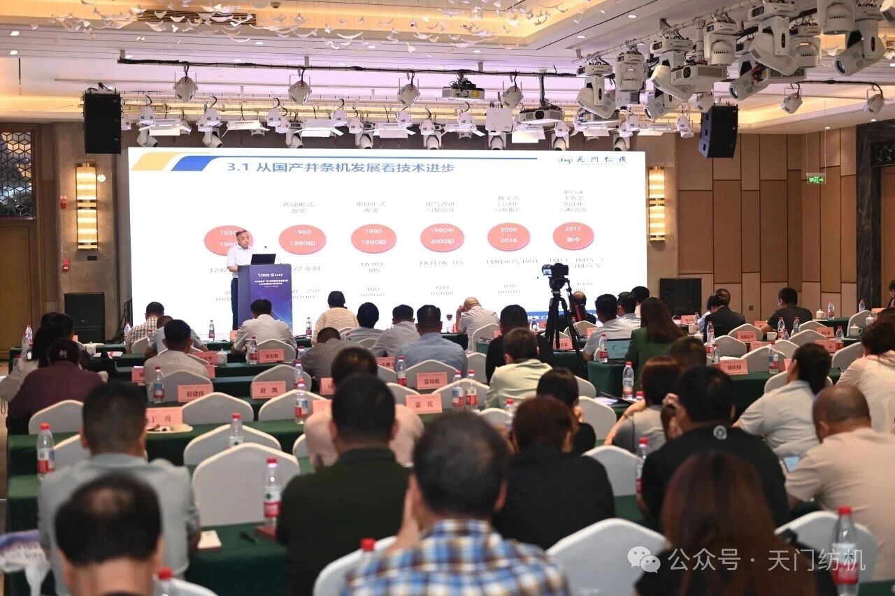 天門紡機總經理焦倫進在《并條機的創新與應用助力紡企高質量發展》報告中解析了并條機技術發展與創新方向,分享了天門紡機在核心技術上加快迭代的心得體會,展示了自調勻整技術在并條工序上的應用成果。他強調,并條機作為關鍵設備,其技術突破對紡織企業降本增效、實現高質量發展具有基礎支撐作用。