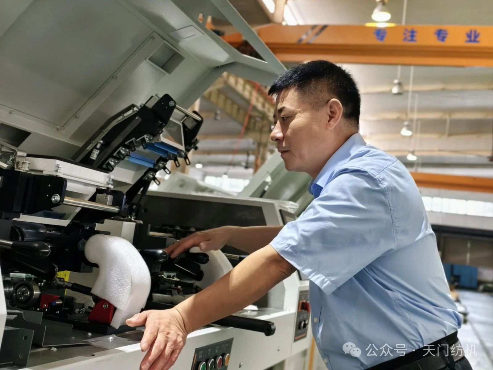 這樣的“義氣小事”,早已刻進他的工作日常。某客戶新廠初建,雖選購了天門并條機,但因車間交叉施工、人手不足,設備安裝進度一再滯后。倪雪峰得知情況后,沒有等客戶開口求助,也沒有以“銷售不負責安裝” 為由推脫,而是直接帶著簡單的行李駐扎在廠區。清理施工廢料、協助設備吊裝、手把手教工人調試操作、制定基礎維護流程…… 他把自己當成了客戶的 “編外員工”,連續多日泡在工地,最終幫客戶搶回了寶貴的投產時間。此后,他還堅持每月上門回訪,幫助車間調整工藝,解決生產中出現的問題,把 “一次性銷售”變成了“長期陪伴式服務”,得到了客戶上至老板下至普通工人的交口稱贊。