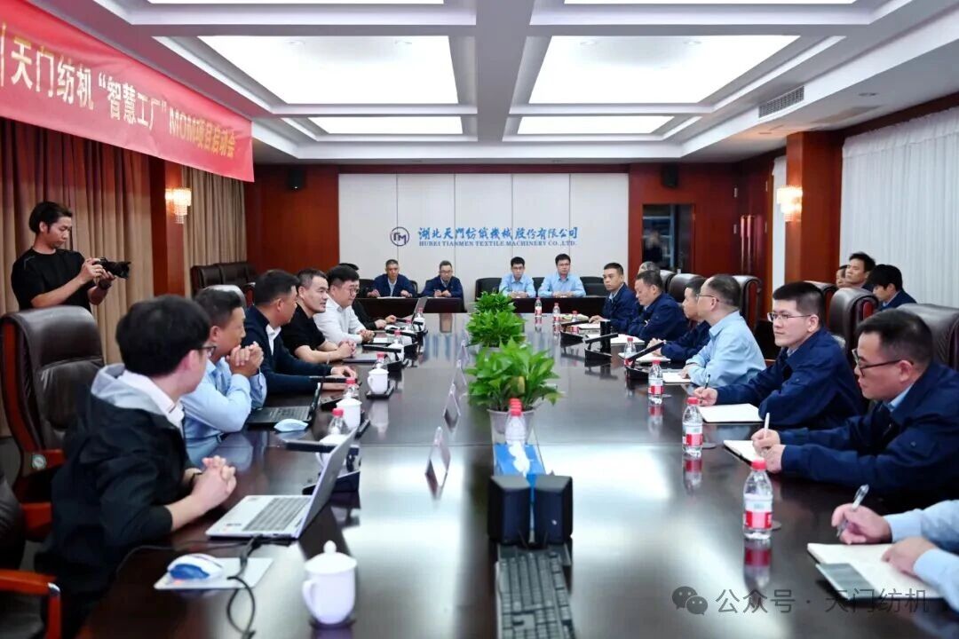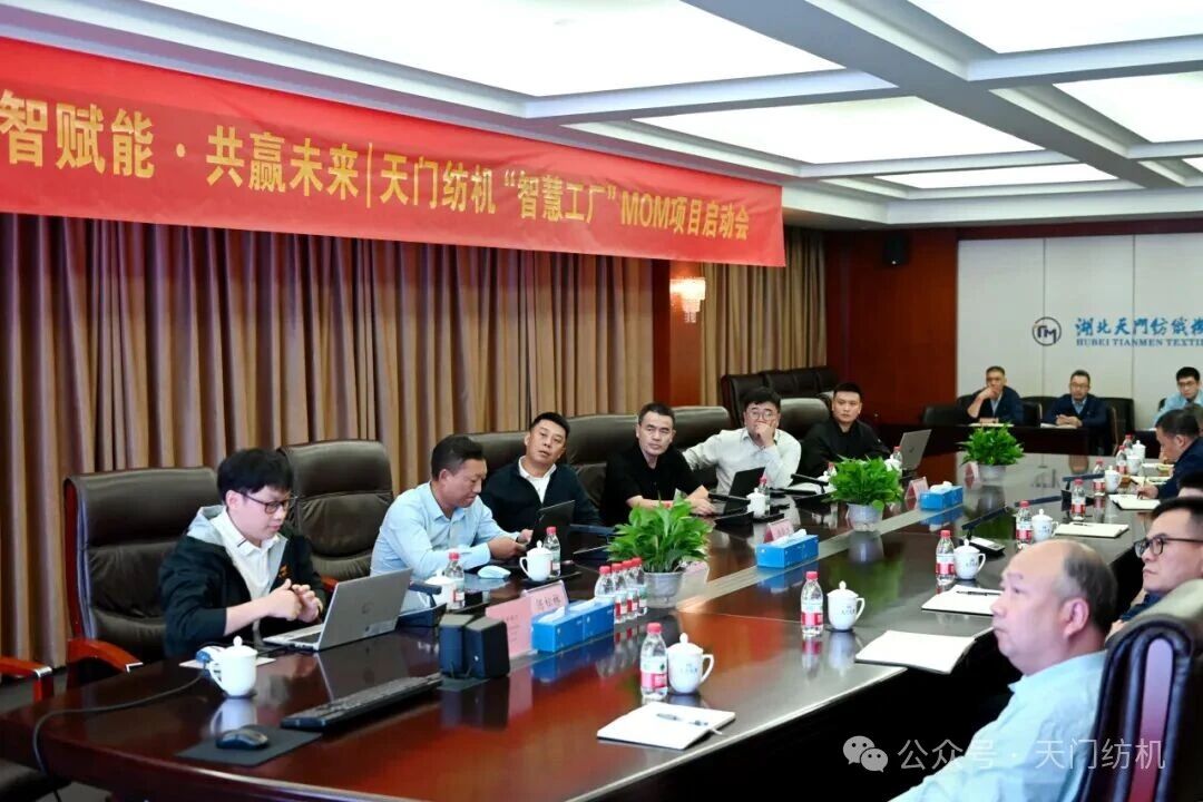 2025年10月15日下午,天門紡機在科技樓五樓會議室召開MOM系統項目啟動會。公司董事長沈方勇、項目合作方廣東盤古信息科技股份有限公司CTO劉鵬、副總經理游畢濤及項目相關負責人出席會議,公司副總經理胡進紅、鄧俊杰,有關部門、車間負責人和工作人員參加了會議。